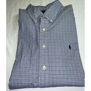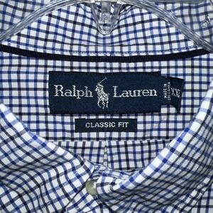 Ralph Lauren Classic Fit Men's Button Down Shirt Size XXL Blue Gingham Logo E11