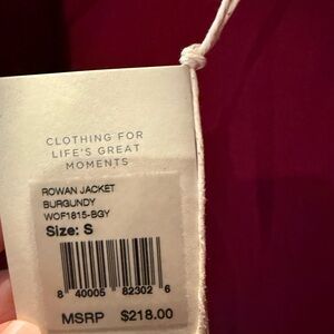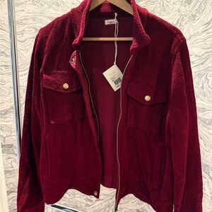 Elegant burgundy jacket with a sleek design. Ideal for versatile styling.