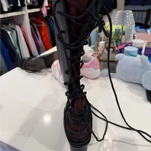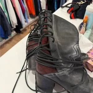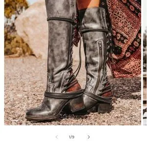 Freebird Stylish Gray Leather Knee-High Boots worn only a few times