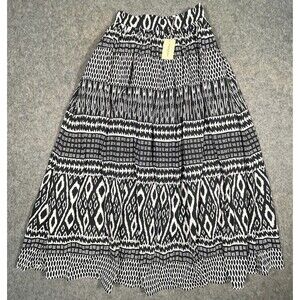 NWT Sundance Blakely Maxi Skirt Black White Geometric Pockets Back Zip Cotton XS