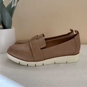 New Dr.Scholl’s Light Brown Reptile Faux Leather Slip-On Loafers w/White Soles