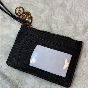 Anne Klein Black Textured Card Holder with Gold Logo