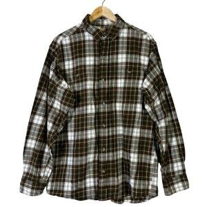 RedHead Plaid Flannel Button Shirt Mens L Brown Green 100% Cotton Cabincore
