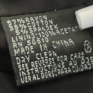 Anne Klein Collection Suit jacket offers a sophisticated blend of utility and tailored elegance. Crafted from a structured rayon-cotton blend with a hint of stretch, this piece features a notched lapel, multiple functional pockets with button details, and a unique braided belt that cinches the waist for a flattering peplum-style silhouette. The interior is fully lined for comfort, and the back showcases precise paneling and a continuation of the belted detail.