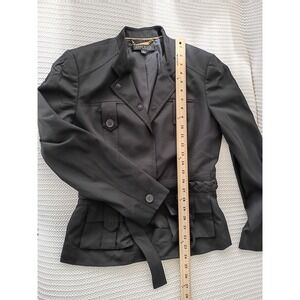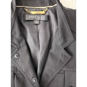 Anne Klein Collection Belted Safari Blazer Black Rayn Cotton Jacket Women 8 NWOT