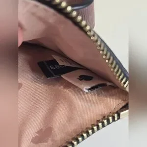 Charming Kate Spade novelty card holder. Features 4 card slots, 1 slip pocket and zip top closet pocket. Includes an engraved keychain attachment so you can attach this to your bag!