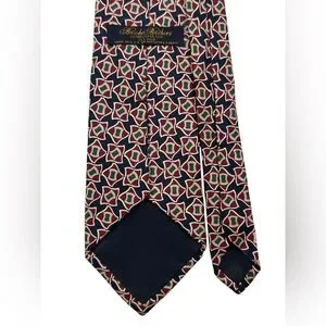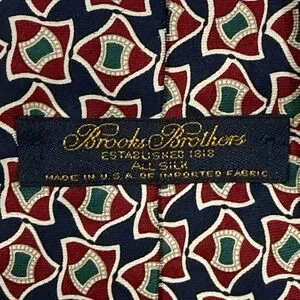 Brooks Brothers Silk Tie Geometric Medallion Navy Red 58x3.25