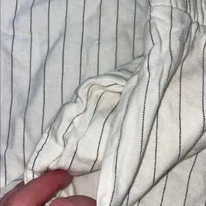 Comfortable white pants with subtle stripes. Perfect for casual wear.