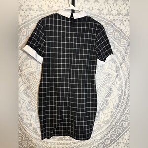 Chic mini dress with a checkered pattern. Features a classic collar and short sleeves. Perfect for casual outings.