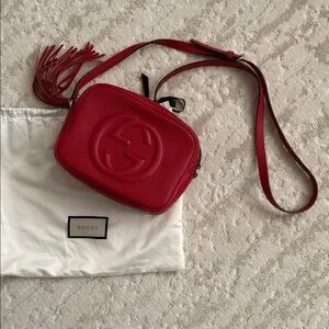 Authentic Gucci Soho Disco Red Pebbled Leather Crossbody w/ Dust Bag