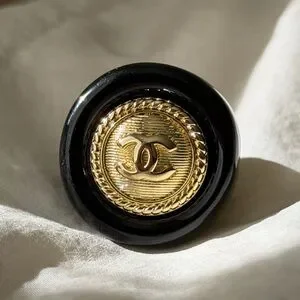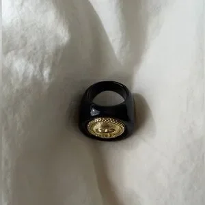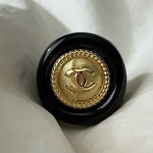 Authentic CHANEL ring with a glossy black finish stamped on the inside. No box or dust bag