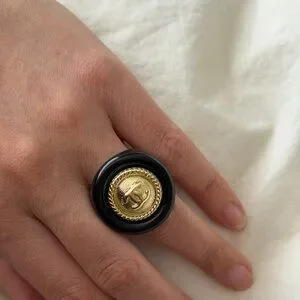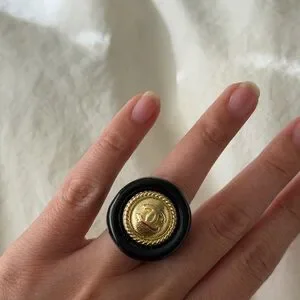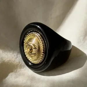 CHANEL Black and Gold Emblem Ring