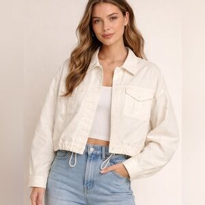 Oak + Fort 100% Cotton Drawstring Cropped Button Down Shirt