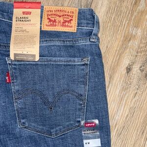 Stylish straight leg jeans by Levi's. Comfortable fit. Versatile blue color.
