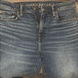 Comfortable American Eagle relaxed straight jeans in dark wash.