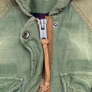 Free People colorblock military cargo buffalo plaid lined jacket. Size small in good used condition. Chic sage green jacket by Free People. Ideal for everyday style.