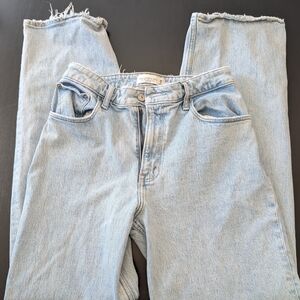 Classic straight leg jeans. Light blue denim. Comfortable fit.