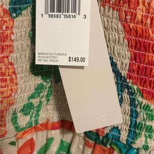 Chic dress with vibrant floral design. Features red, green, and blue hues. Ideal for any occasion.