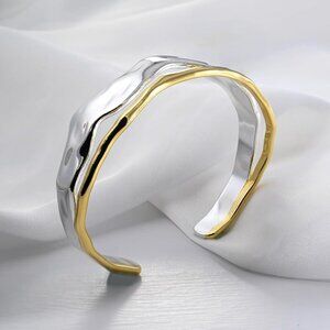 Features: This eye-catching cuff features a double-layer hollow wave design, blending textured gold and silver metals for a one-of-a-kind look. The open, adjustable style makes it easy to slip on and fit comfortably, perfect for everyday wear or dressing up a casual outfit.