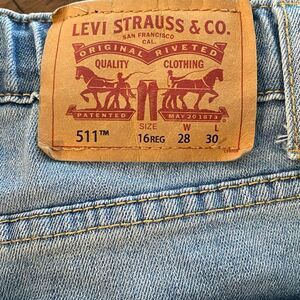 Levi's 511 Jeans Boys Sz 16 Regular 28X30 Slim Fit Distressed Light Flex Stretch