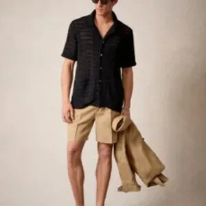 Todd Snyder Open Knit Guayabera Shirt Black Size Medium NWOT