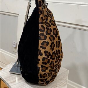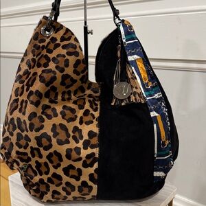Stuart Weitzman Bag Calf Hair Leopard Print and Black Suede Large Hobo