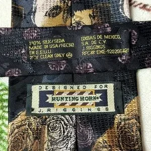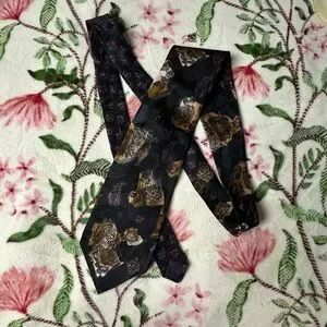 Add a touch of sophistication to your attire with this black and gold patterned tie. Ideal for formal events, this tie offers a stylish and refined look.