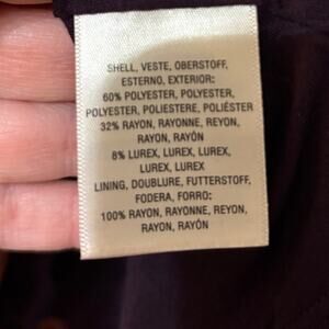 Excellent condition. Size small. Jacquard knit in a regal purple, coral and gold metallic. Sparkly in person. Festive and winter holiday season appropriate. Belted waist, long sleeves. 70s vibe.