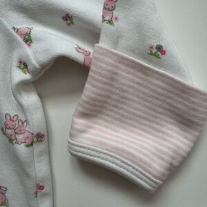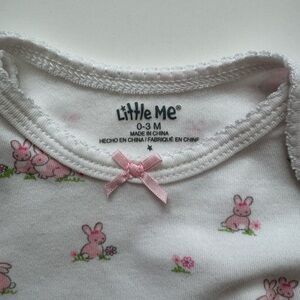 Cute little me nightgown size 0-3m with pink bunny print. Includes matching hat. Soft and cozy for bedtime. Smoke-free home. Open to offers and fast shipping!
