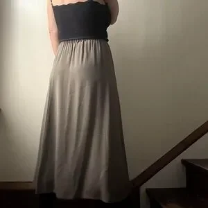 Eileen Fisher grey silk midi skirt