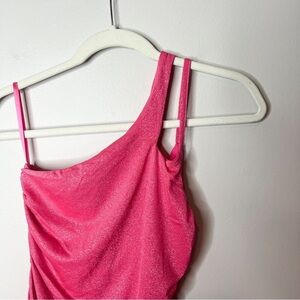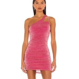 Superdown Jayden One Shoulder Mini Dress in Pink Glitter