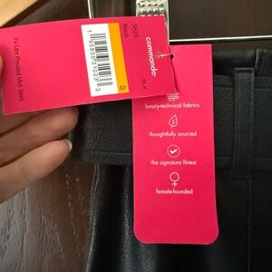 Sleek black leather skirt with a stylish belt. Perfect for elevating any outfit. I LOVE this skirt, I bought from Saks a small and a medium and kept the M. I’ve never gotten more compliments on another outfit before! The skirt is so chic! Never worn!
