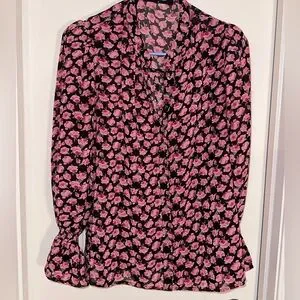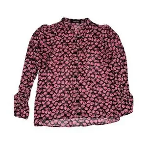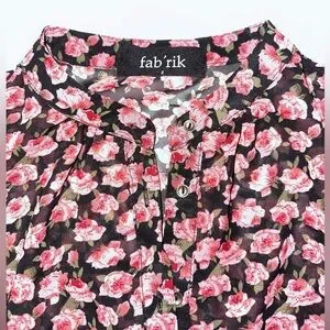 Fab’rik Sheer Long Sleeved Floral Blouse w/Gold Tone Buttons Sz Small Pink Black