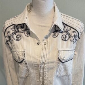 Women’s white WESTERN Button-Up Shirt with Black Embroidery