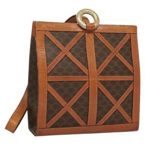 Pre-Owned Authentic CELINE Macadam Canvas Shoulder Bag PVC Leather Brown Gold