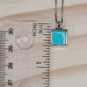Vintage Sterling Silver Square Turquoise Pendant Necklace Minimalist 19"