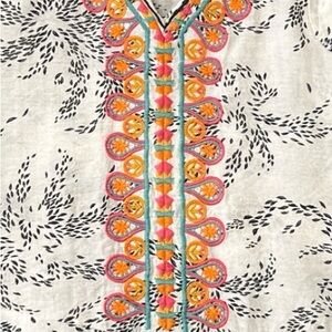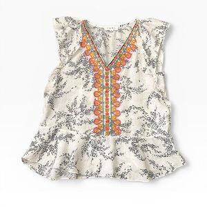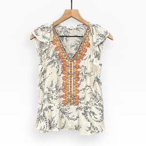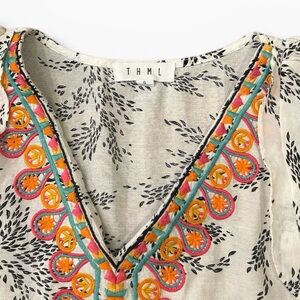 THML Boho White Lightweight V-Neck Embroidered Detail Flutter Sleeve Size Small