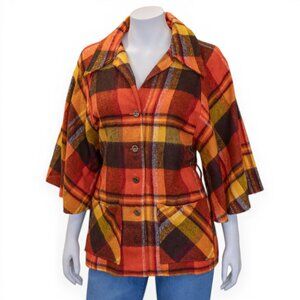 70s Prior Western Plaid Jacket w/Bell Sleeves * Harvest Colors