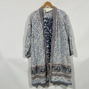 Maeve by Anthropologie Blue and White Patterned Kimono Cardigan