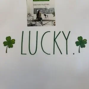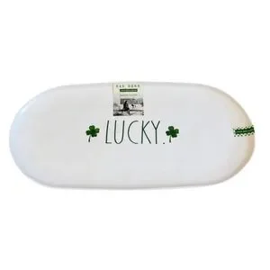 Rae Dunn Lucky St Patricks Day Melamine Serving Platter White Green Clover 19in