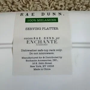 Melamine serving platter provides a durable and stylish foundation for your holiday spreads. White oval tray features the word "LUCKY" in Rae Dunn's signature elongated font, flanked by two green four-leaf clovers. Lightweight and shatter-resistant construction makes it ideal for outdoor gatherings, parties, or everyday seasonal decor. Dishwasher safe on the top rack for easy cleanup after St. Patrick's Day festivities.