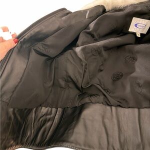 Black Leather & Cream Fur Jacket | Quilted Sleeve Luxe Winter Coat XL