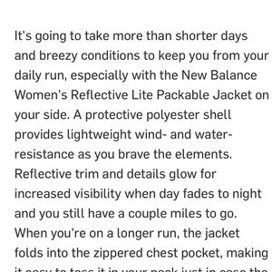New Balance Reflective Lite Packable Jacket - Women's M