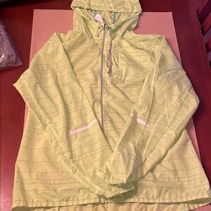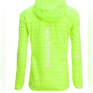 Eye-catching lime jacket with sleek design. Features New Balance reflective logo on the back . Ideal for active wear and running in warmer weather. Extremely lightweight. Some blemishes as photographed so please look at all photos.