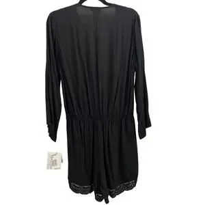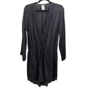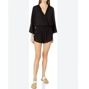 La Blanca La Costa Lace Swim Coverup V Neck Romper, Black M