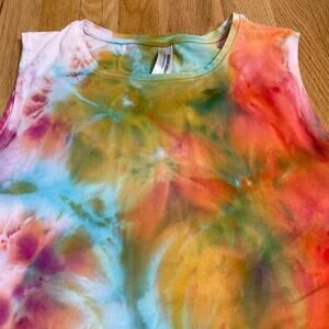handmade tie dyed ladies tank XL green aqua turquoise orange