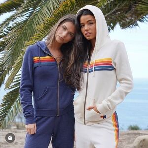🌈 Aviator Nation Cream Rainbow Striped Hoodie