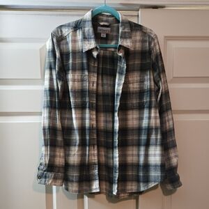 Womens Plaid Button-Down Shirt - Green and White