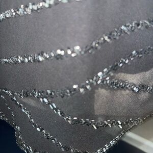 Elegant sleeveless blouse with shimmering silver accents. Perfect for evening wear.