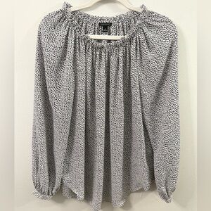 Ann Taylor Medium Black Spotted Long Sleeve Keyhole Front Blouse